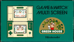 Deine Aufgabe ist es, Mr. Game & Watch so durch das Gewächshaus zu steuern und die Parasiten mit einem Sprüh aus der Pflanzenschutzdose zu schützen, das die Sonnenblumen erhalten bleiben. Achte darauf, das jeder Sprüh die Spinnen im unterem Spielfeld nur einen Schritt zurück befördern und nicht, wie im oberen Spielfeld bei den Schnecken, diese töten.